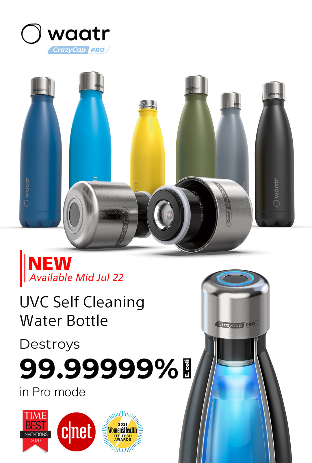 The CrazyCap Pro bottle delivers game-changing technology that lets you purify water wherever you go.