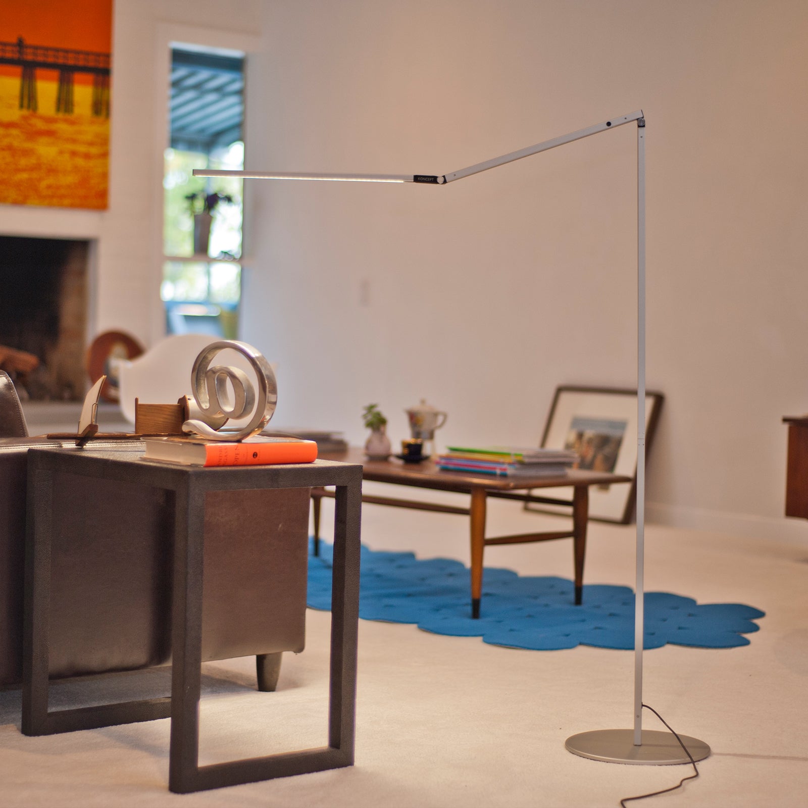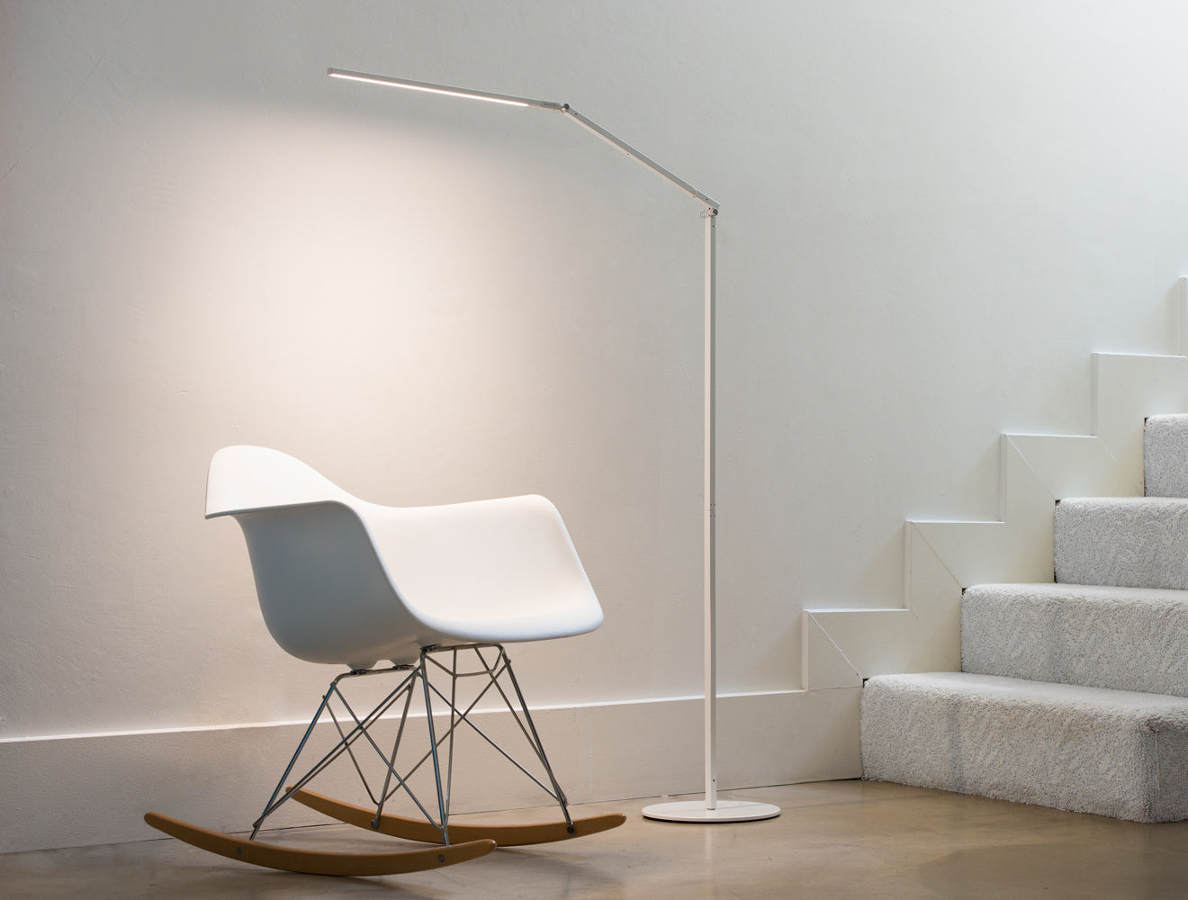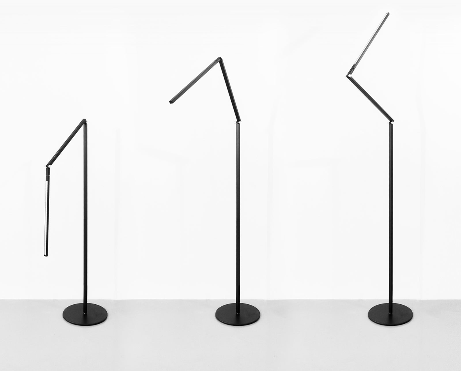 Need ambient light? Turn the LED head to the ceiling. Need reading light? Pull the LED head down to sofa or chair level. Need no light at all? Fold the LED head against the body and you have a slim, sculptural piece.