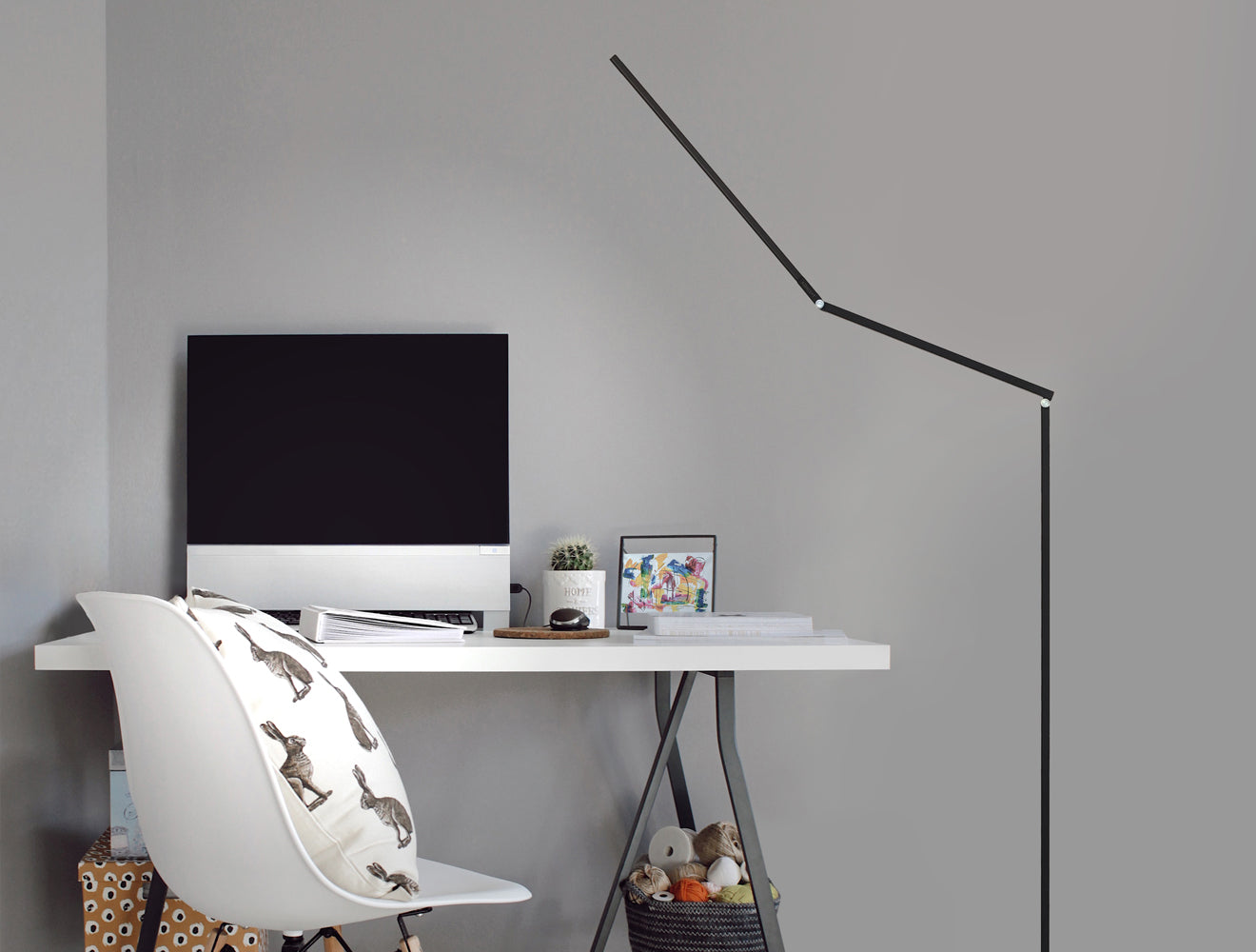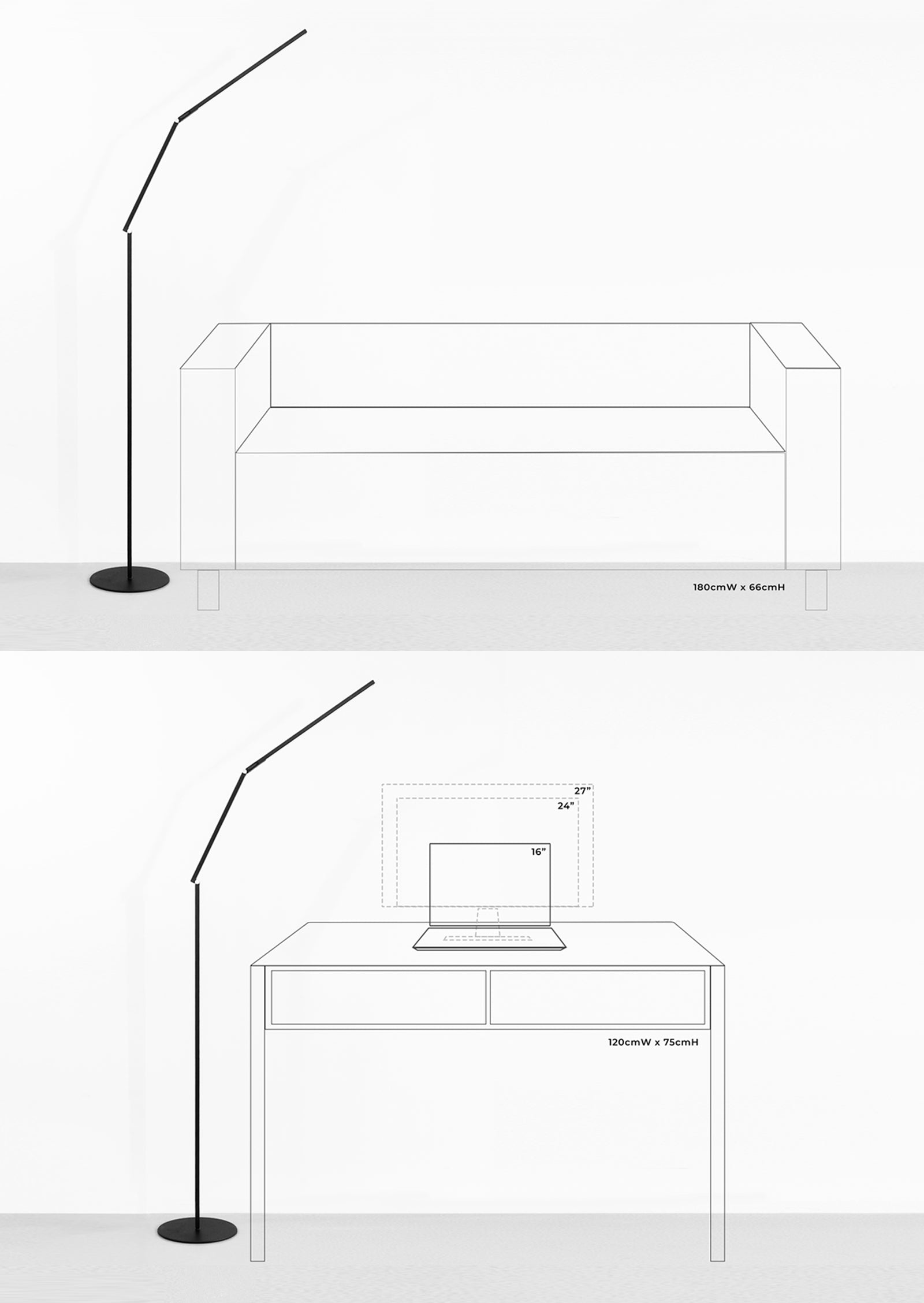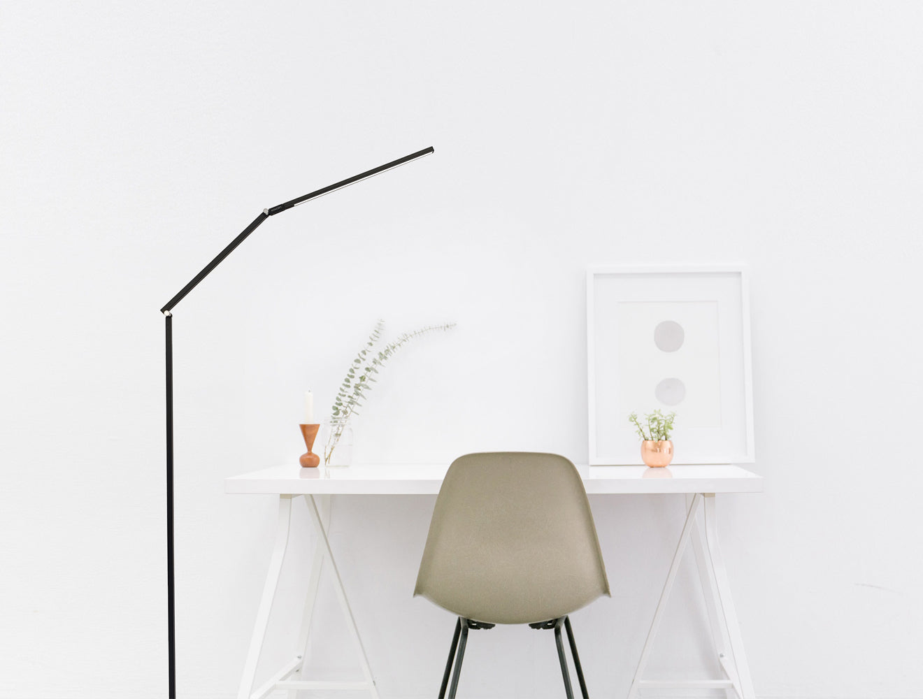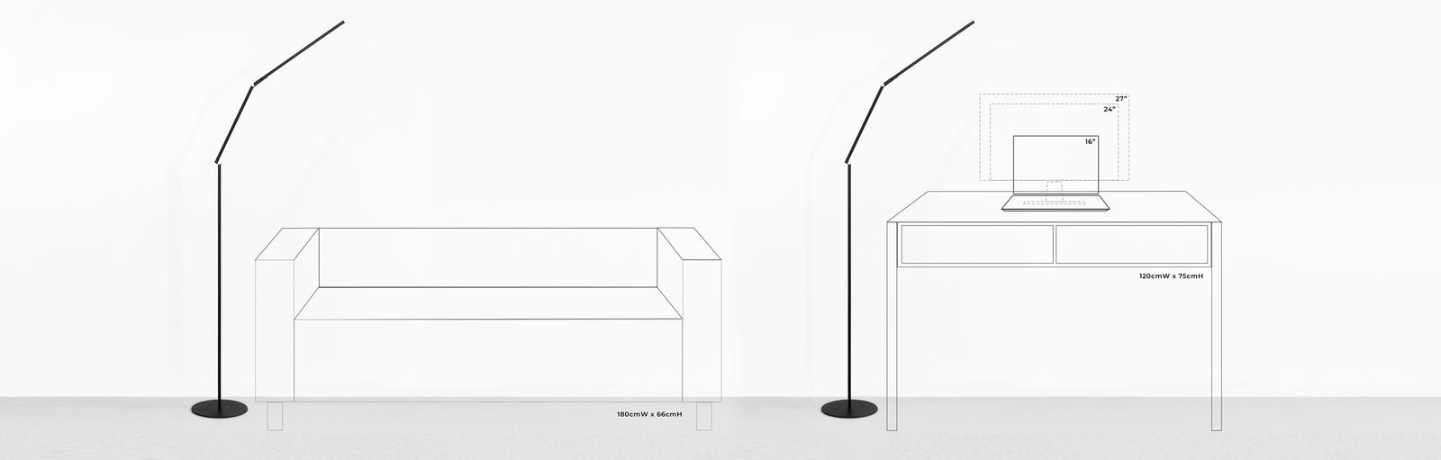 Need ambient light? Turn the LED head to the ceiling. Need reading light? Pull the LED head down to sofa or chair level. Need no light at all? Fold the LED head against the body and you have a slim, sculptural piece.